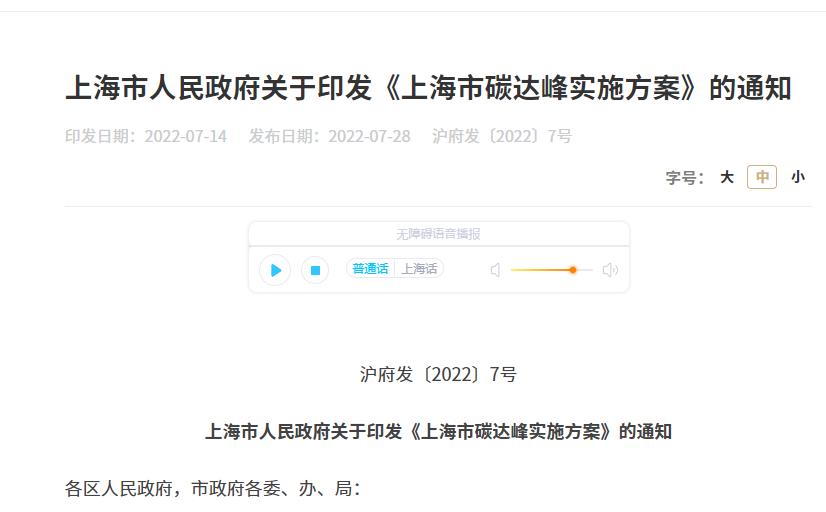 氫啟未來網獲悉,7月28日,上海市人民政府在其官網發布關于印發《上海市碳達峰實施方案》的通知