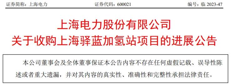 上海電力在5月22日發(fā)布公告,表示其全資子公司國電投長江氫能科技有限公司近日已成功收購上海化工區(qū)驛藍加氫站項目的51%股權(quán)。