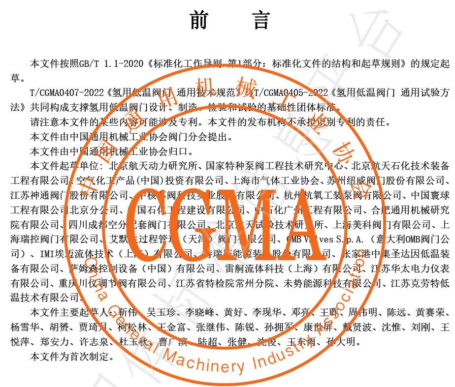 近日,經(jīng)中國通用機械工業(yè)協(xié)會批準的《氫用低溫閥門通用試驗方法》、《高壓氫氣閥門安全要求和測試方法》、《氫用低溫閥門通用技術(shù)規(guī)范》等多項最新氫用閥門團體標準正式發(fā)布