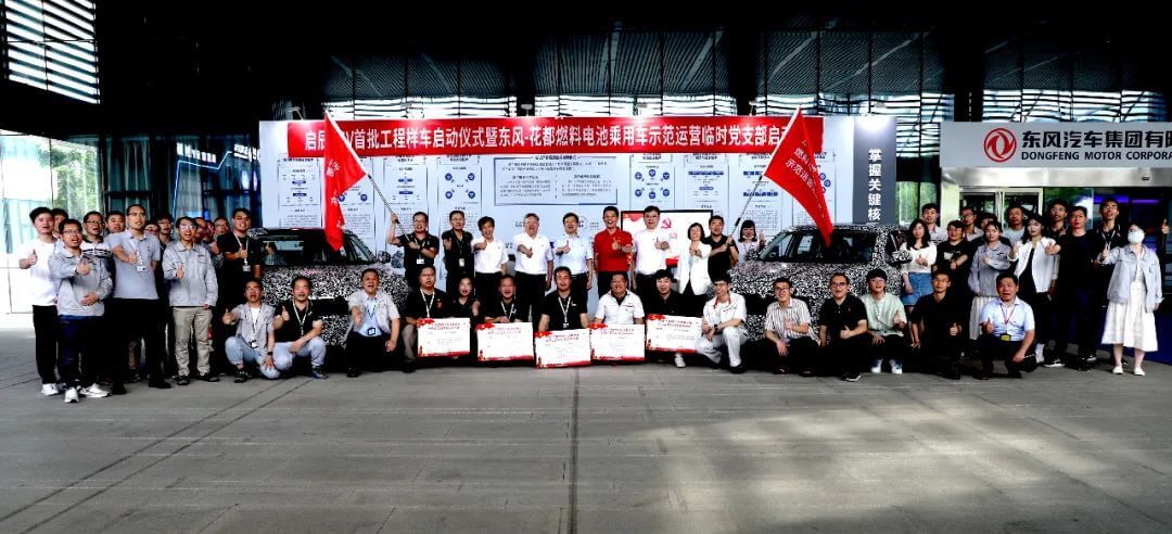 6月9日,啟辰氫燃料電池乘用車首批工程樣車啟動儀式暨東風-花都燃料電池乘用車示范運營臨時黨支部啟動會在東風公司技術中心舉行,啟辰氫燃料電池乘用車工程樣車首次亮相并計劃于2023年底交付10臺車投入示范運營。