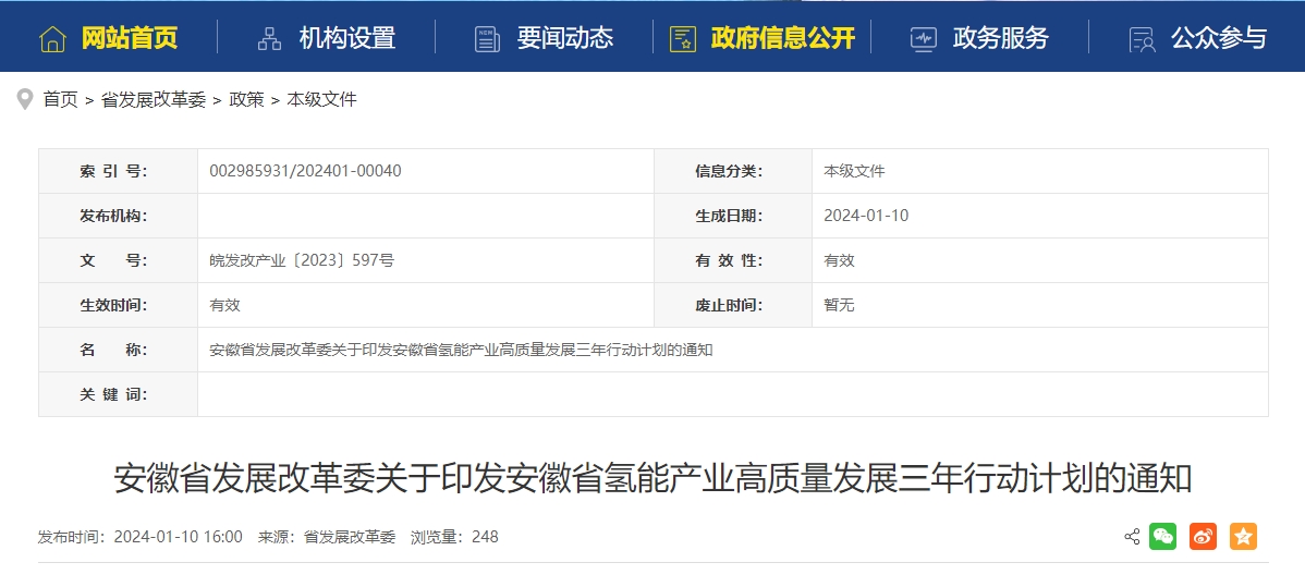 氫啟未來網獲悉,為搶占氫能產業發展機遇,培育經濟發展新動能,加快形成新質生產力,助力實現碳達峰、碳中和目標,近日,安徽省發展改革委發布關于印發《安徽省氫能產業高質量發展三年行動計劃》的通知。