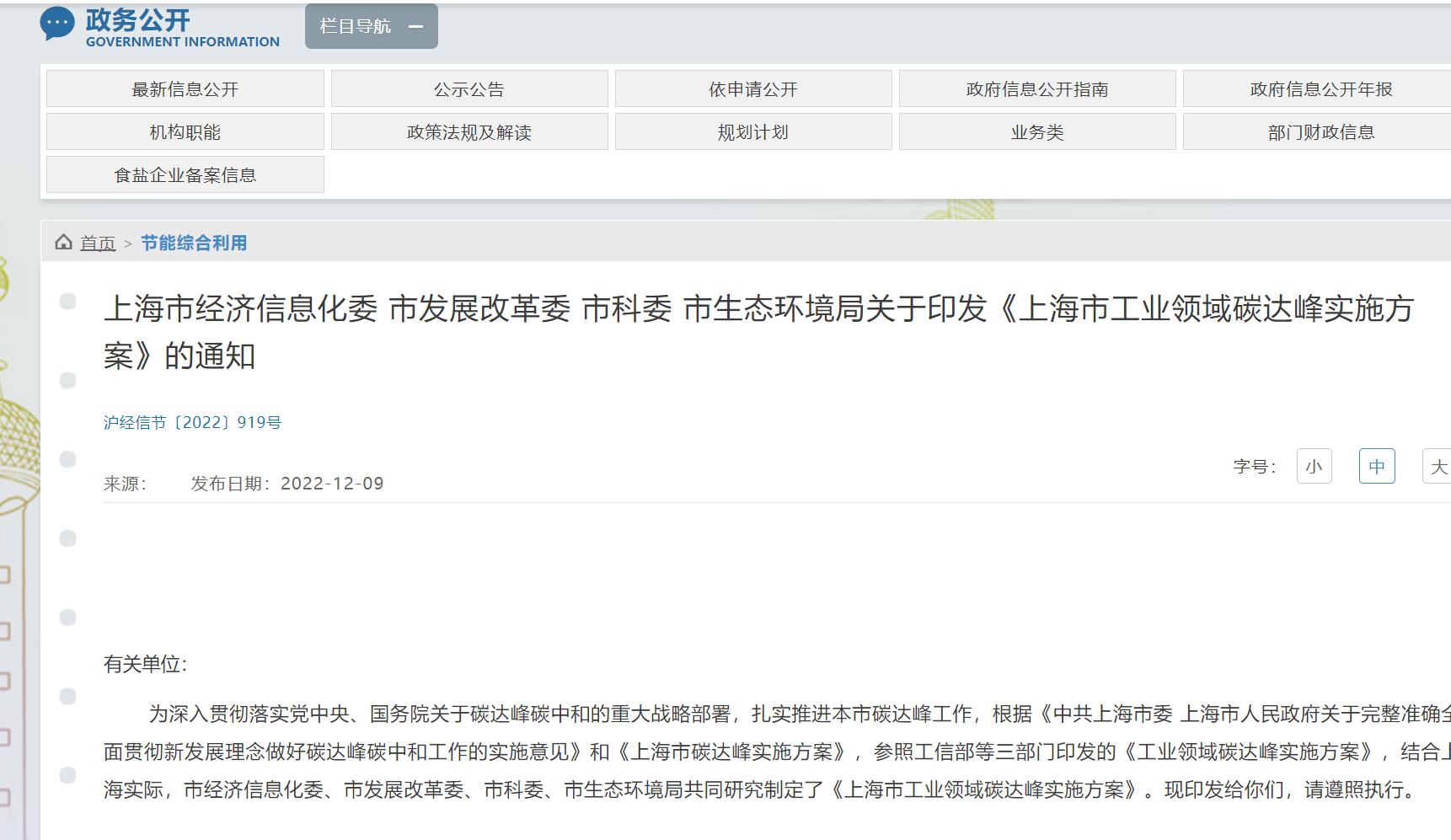 12月7日,安徽省人民政府發布關于印發安徽省碳達峰實施方案的通知