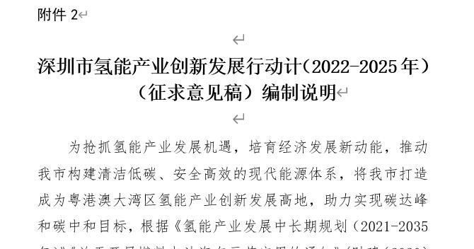 深圳市氫能產業創新發展行動計(2022-2025年)(征求意見稿)編制說明