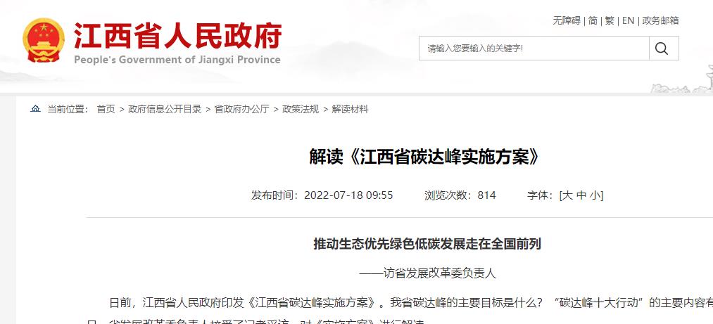 日前,江西省人民政府印發《江西省碳達峰實施方案》。江西省碳達峰的主要目標是什么?“碳達峰十大行動”的主要內容有哪些?近日,省發展改革委負責人接受了記者采訪,對《實施方案》進行解讀。
