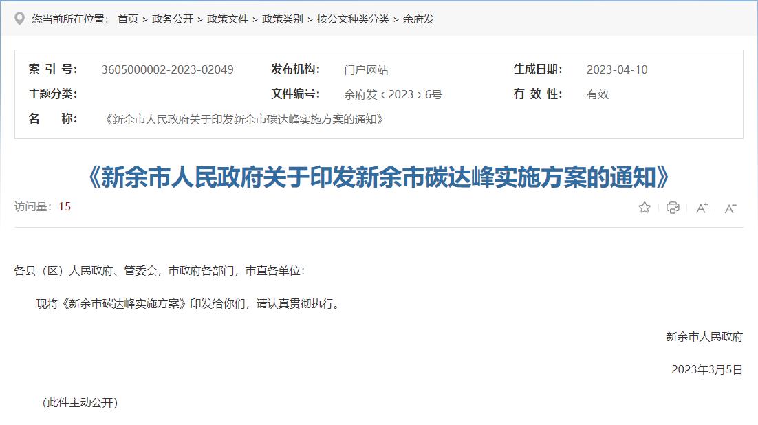 氫啟未來網(wǎng)獲悉,4月10日,新余市人民政府發(fā)布關(guān)于印發(fā)《新余市碳達(dá)峰實(shí)施方案》的通知