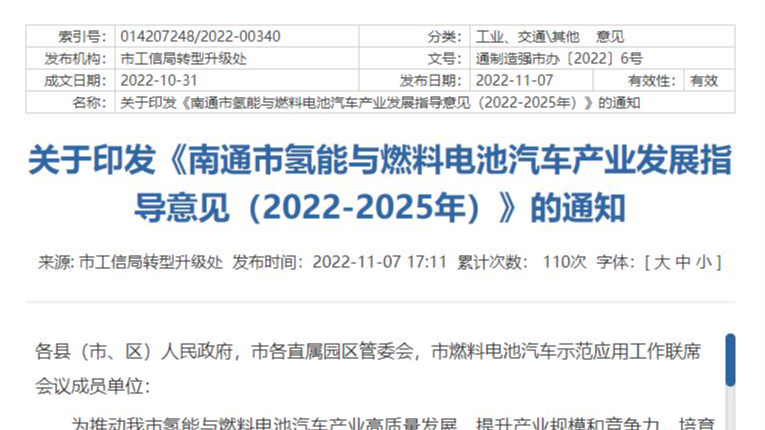 氫能總產(chǎn)值突破200億元!《南通市氫能與燃料電池汽車產(chǎn)業(yè)發(fā)展指導意見(2022-2025年)》發(fā)布