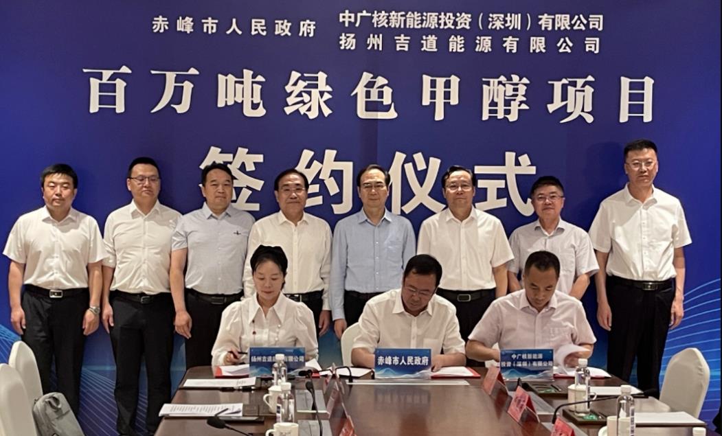 6月13日,赤峰市政府攜手中廣核新能源投資(深圳)有限公司、揚州吉道能源有限公司簽署了風光制氫百萬噸綠色甲醇項目合作框架協(xié)議。赤峰市委書記萬超岐親臨簽約儀式。項目建成后,預計每年可實現(xiàn)產值84億元,貢獻稅收10億元,安排就業(yè)1000人左右,將為赤峰市產業(yè)轉型升級和經濟高質量發(fā)展發(fā)揮重要作用。赤峰市相關部門和地區(qū)的主要負責人參加了簽約儀式。