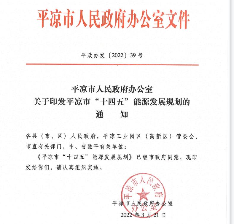 《平涼市“十四五”能源發展規劃》解讀