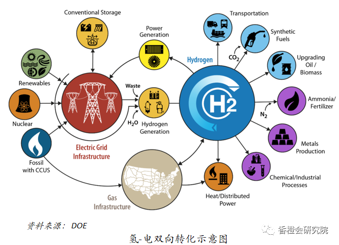 三個儲能技術方向包括:雙向電力儲能(固定式和移動式),化學能儲和熱能存儲,靈活生產和可控負荷。其中,氫儲能(HES)主要包括電氫雙向轉化儲能和鹽穴存儲兩種,前者為主要探討對象。