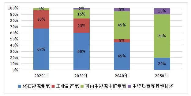 從經濟性及技術進步角度來看,短期優先選用工業副產氫,中期采用化石能源制氫結合碳捕捉技術,長期將采用可再生能源電解水制氫。