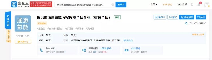 近期,氫云鏈從山西經(jīng)濟(jì)日?qǐng)?bào)獲悉,山西省首支氫能產(chǎn)業(yè)基金——長(zhǎng)治市通惠氫能股權(quán)投資合伙企業(yè)(有限合伙)于2020年12月30日在長(zhǎng)治市注冊(cè),并于近日在中國(guó)證券投資基金業(yè)協(xié)會(huì)完成備案,查詢企查查了解到,該私募基金,由長(zhǎng)治市財(cái)通惠股權(quán)投資管理有限公司作為基金管理人,總規(guī)模10100萬(wàn)元。