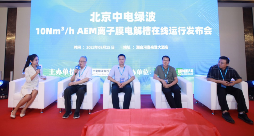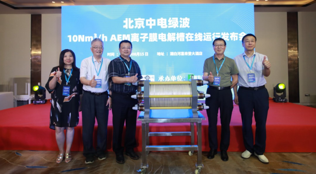 8月15日,在全國生態日當天,由北京中電綠波科技有限公司研制的全國首臺在線運行10Nm3/h AEM離子膜電解槽正式發布。國際氫能協會副主席、清華大學教授毛宗強、清華大學教授李振山、東北電力大學教授王擎等國內知名氫能專家和北京中電綠波科技有限公司總經理程朝卿等出席發布會。