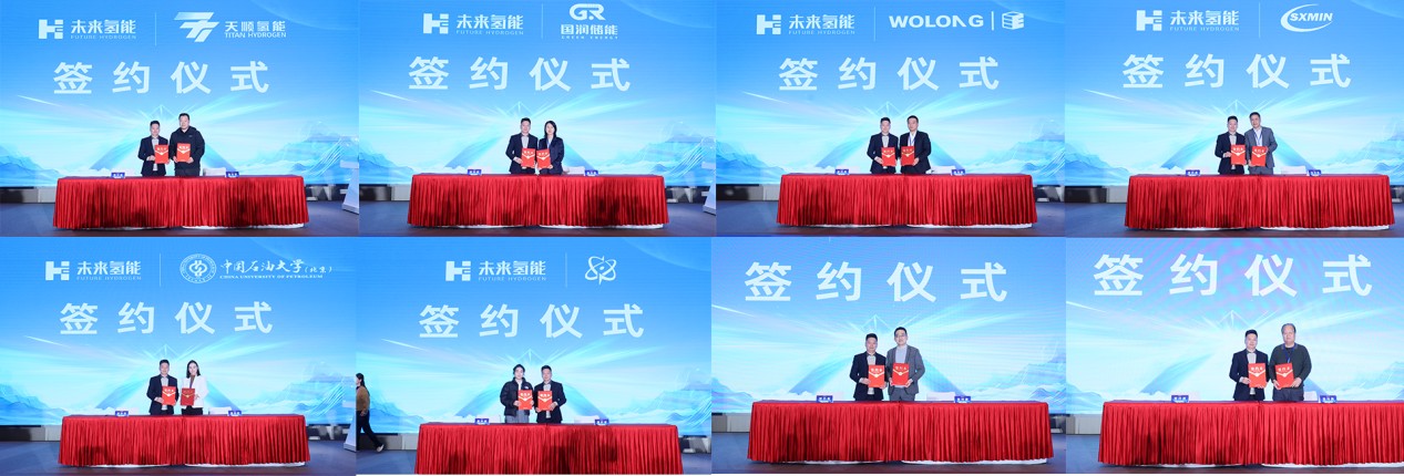 中國(guó)核工業(yè)中原建設(shè)有限公司、中國(guó)石油大學(xué)新能源與材料學(xué)院、臥龍英耐德(浙江)氫能科技有限公司、天順氫能科技(河南)有限公司、山西國(guó)潤(rùn)儲(chǔ)能科技有限公司、美國(guó)三湘金屬公司、綠色能量(海南)科技有限公司、中國(guó)氫能產(chǎn)業(yè)鏈出海聯(lián)盟分別與未來(lái)氫能簽署技術(shù)合作、產(chǎn)品合作、市場(chǎng)合作、戰(zhàn)略合作等合作協(xié)議,共同開啟AEM電解水制氫示范合作和產(chǎn)業(yè)化協(xié)同的新篇章。參會(huì)見證單位包括昌平區(qū)相關(guān)部門、未來(lái)科學(xué)城管委會(huì)能源處、國(guó)際綠氫組織、清華大學(xué)、工商銀行、國(guó)電投集團(tuán)、三峽集團(tuán)、陽(yáng)光氫能、明陽(yáng)氫能、昌平融媒體、北京電視臺(tái)等政府部門、大學(xué)院校、協(xié)會(huì)組織、行業(yè)企業(yè)、資本機(jī)構(gòu)、新聞媒體及專家、同業(yè)人士等共計(jì)70余家、200余人。