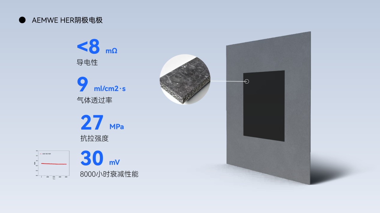 1. 陰極催化劑及陰極電極:200 mA/cm2的電流密度下70mV過(guò)電位、8000小時(shí)30 mV的衰減
