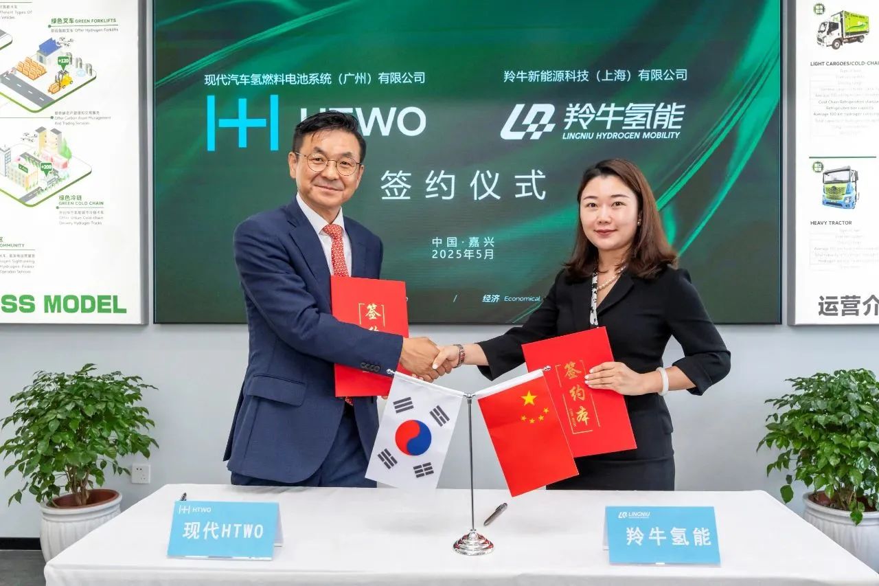 5月13日,羚牛氫能與現代汽車氫燃料電池系統(廣州)有限公司(簡稱“HTWO廣州”)正式簽署戰略合作協議。雙方將圍繞氫能商用車的推廣與應用展開深度合作,共同推動中國交通領域的綠色低碳轉型,助力國家“雙碳”目標實現。