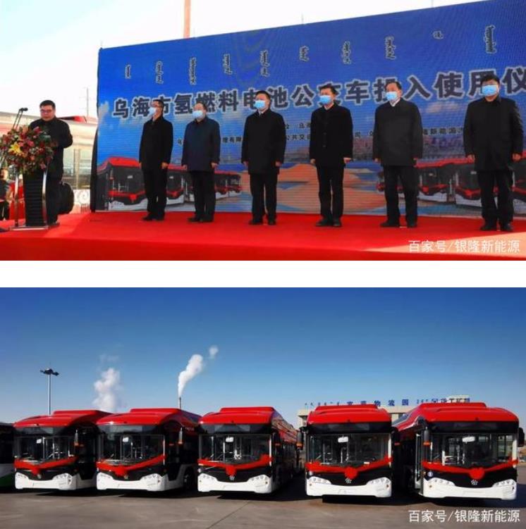 2021年2月初,內蒙古自治區烏海市氫燃料電池公交車投入使用儀式舉行。據了解,此次烏海投放的20輛氫燃料電池公交車,均來自廣東珠海的銀隆新能源股份有限公司。銀隆新能源氫燃料電池客車在西北的烏海“氫”裝上陣,也標志著氫燃料客車應用推廣再次駛入新的里程碑。