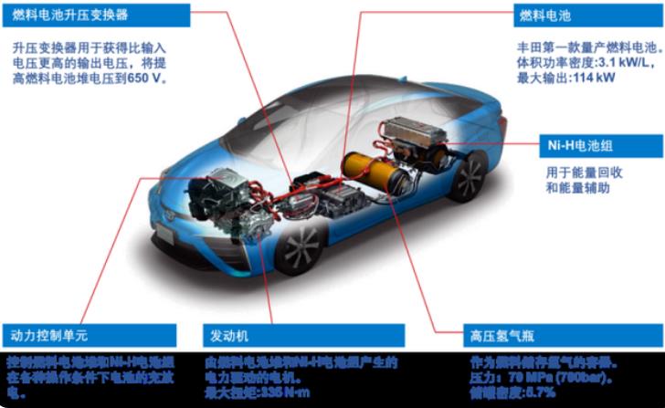 圖2 Mirai 氫燃料電池汽車構造(Outline of the Mirai. www.toyota-europe.com (accessed 14.03.2017).)