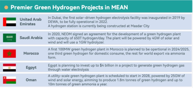 到目前為止,清潔氫的增長一直是由歐洲、日本、韓國、中國和美國的氫適應領導者推動的,但中東和北非地區現在正在采取類似的方法。
