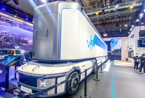 此次展會的另一個亮點是搭載京星產品的49噸智能燃料電池重型卡車“Singsoo 1”。車輛配備一個12瓶組70Mpa車載氫儲存系統(tǒng)。在實際操作中,只需10多分鐘就可以氫化,射程可達近1000公里。此外,利用L4自動駕駛技術和智能網絡技術,實現車隊運行優(yōu)化和效率提高。