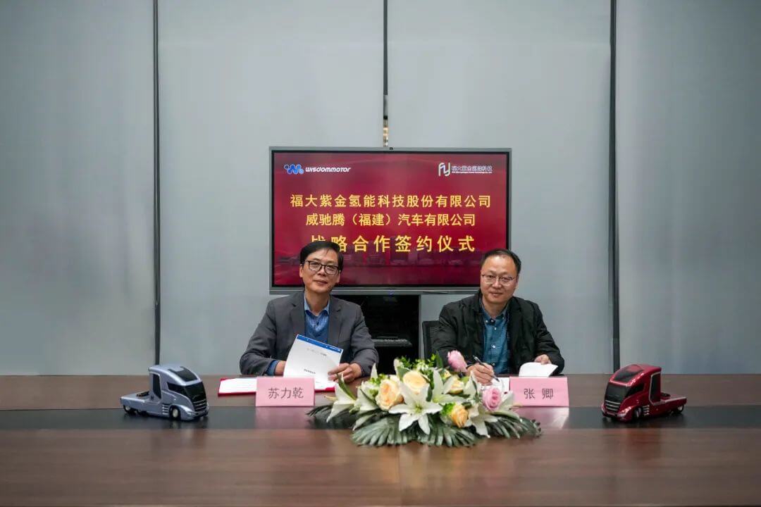 2023 年12月18日,威馳騰(福建)汽車有限公司(簡稱“威馳騰”)與福大紫金氫能科技股份有限公司(簡稱“福大紫金”)在福建漳州共同簽署一項具有里程碑意義的戰略合作協議。福大紫金總經理張卿,威馳騰創始人兼總裁蘇力乾攜公司領導、技術高管等出席見證了簽約儀式。