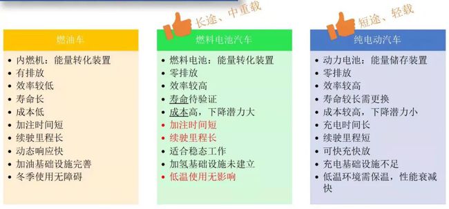 原理和原料來源弄清楚后,我們還是回到前面問題,為什么有了純電動汽車產(chǎn)業(yè),還要搞氫燃料汽車產(chǎn)業(yè)呢?首先是互補,下圖說的比較清楚,氫燃料汽車加注時間短,續(xù)航時間長,低溫不受影響,用于中長途的大巴,重卡貨車有天然的優(yōu)勢。因此起碼在開始階段,氫燃料電池汽車與純電動并不是競爭關(guān)系,而形成了很好的互補效應(yīng)。最近由于固態(tài)電池的忽悠,氫能源狠狠地下殺了一波,逼著大家交出籌碼,而美股的Plug,巴拉德均創(chuàng)出了新高,實際上,固態(tài)電池就算能量400wh/kg,也只有氫電池的五到十分之一而已,仍然無法在重卡使用,目前固態(tài)電池能量密度還只有理論最大值的一半,5年后才能商業(yè)化,充電速度遠比加氫慢、電網(wǎng)沖擊等都解決不了。另外最近大家才認(rèn)識到,就是氫氣作為儲能介質(zhì)的優(yōu)勢,只要有足夠的容器,氫氣可以承擔(dān)小時級別到月級別的儲能。能源上有三大應(yīng)用,發(fā)電,儲能和交通,以前能源只能做到一個到兩個,而氫燃料電池可以橫跨三個市場,改變未來的能源結(jié)構(gòu)。最后還有一點,還是回到環(huán)保上,就是純電動汽車電池的廢物處理,其實是很大的成本和麻煩,目前大家都睜一只眼閉一只眼,避而不談,但不久就會面臨這個頭疼的問題,鋰電池如果不處置好也許會造成比碳排放更大的環(huán)境污染,這點燃料電池的后續(xù)優(yōu)勢又會體現(xiàn)出來。