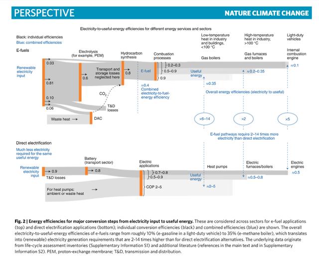 波茨坦氣候影響研究所(PIK)的研究人員在《自然·氣候變化》(Nature Climate Change)上撰文指出,氫基燃料主要用于航空或工業(yè)過程等不容易電氣化的領域。但是,生產(chǎn)這些燃料的效率太低、成本太高,而且它們的可用性也太不確定,無法廣泛取代化石燃料,例如用于汽車或供暖。對大多數(shù)行業(yè)來說,直接用電,比如電池驅(qū)動的電動汽車或熱泵,更經(jīng)濟。對氫燃料的依賴導致對化石燃料和溫室氣體排放的進一步依賴。