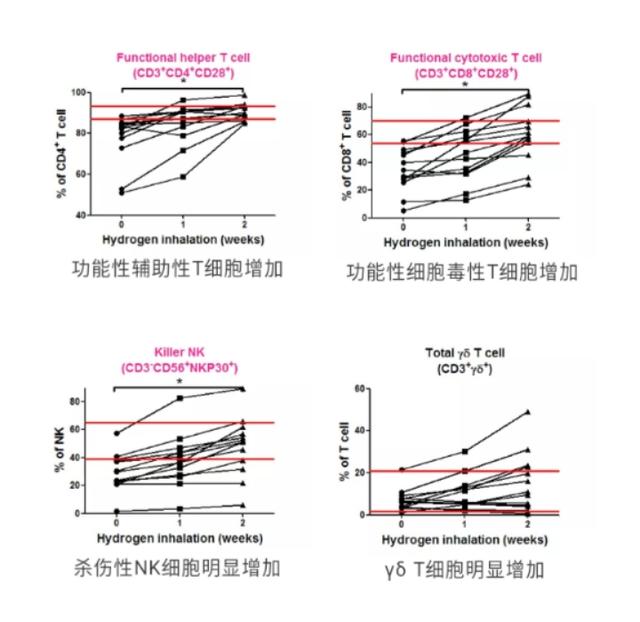 (氫氣吸入兩星期后免疫細胞顯著增多)