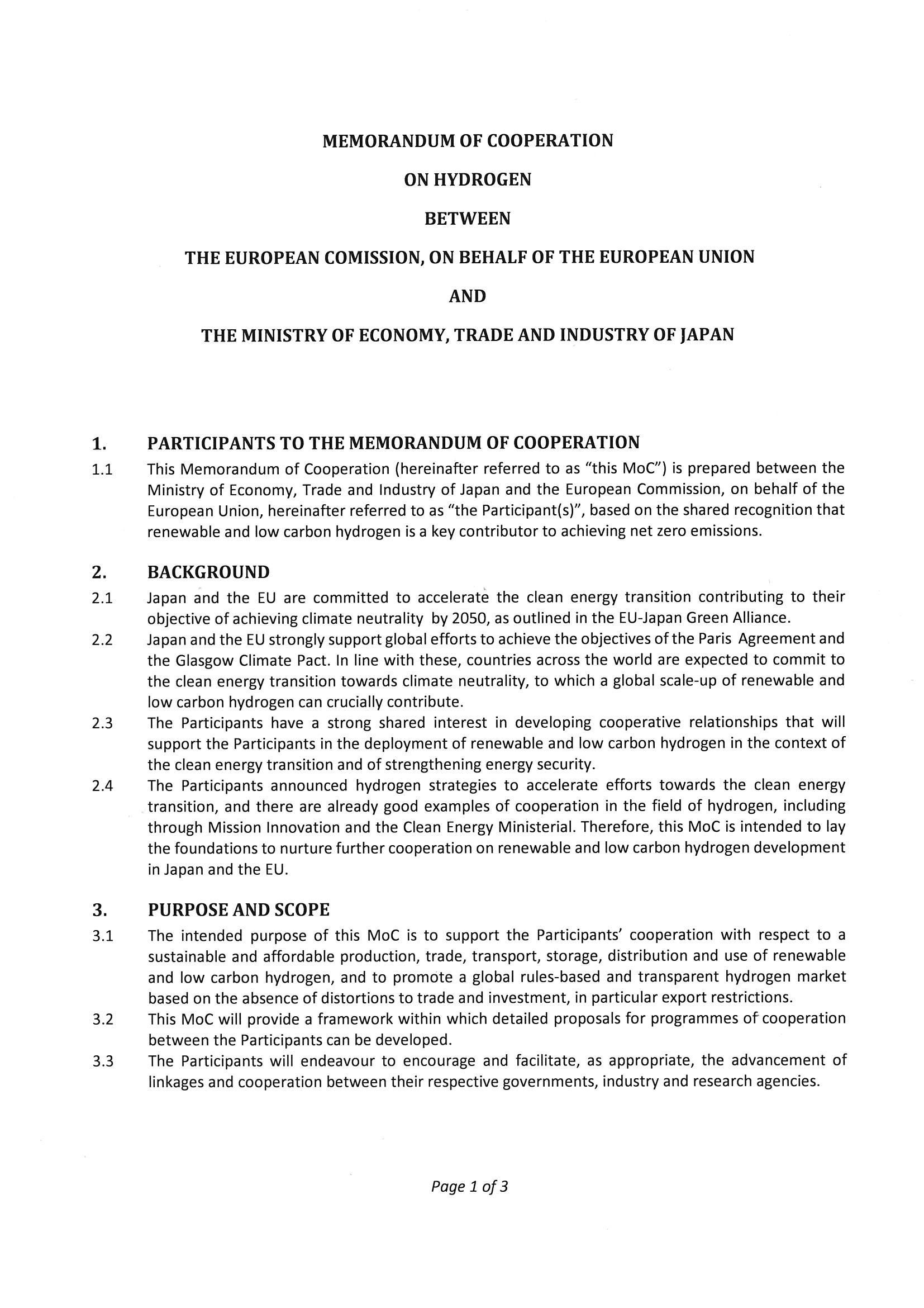 氫啟未來網(wǎng)獲悉,近日,歐盟委員會(代表歐盟)與日本經(jīng)濟(jì)產(chǎn)業(yè)省簽署了一份合作備忘錄,旨在加強(qiáng)氫能方面的合作,以刺激創(chuàng)新和發(fā)展國際氫能市場。