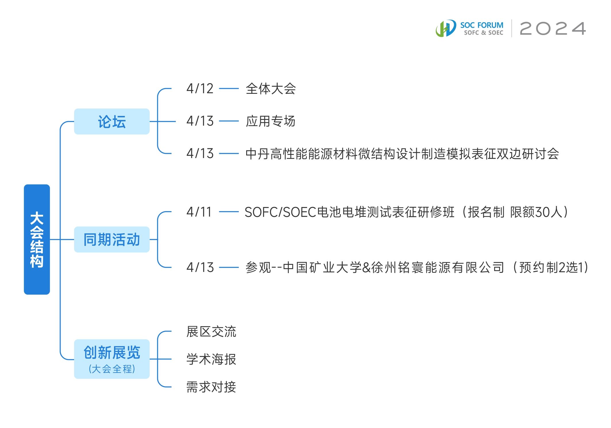 此次論壇為期三天,由全體大會、中丹雙邊研討會組成;4月11日將舉辦SOFC/SOEC電池電堆測試表征研修班,4月13日會議結束后可參加中國礦業大學/徐州銘寰能源有限公司參觀活動。