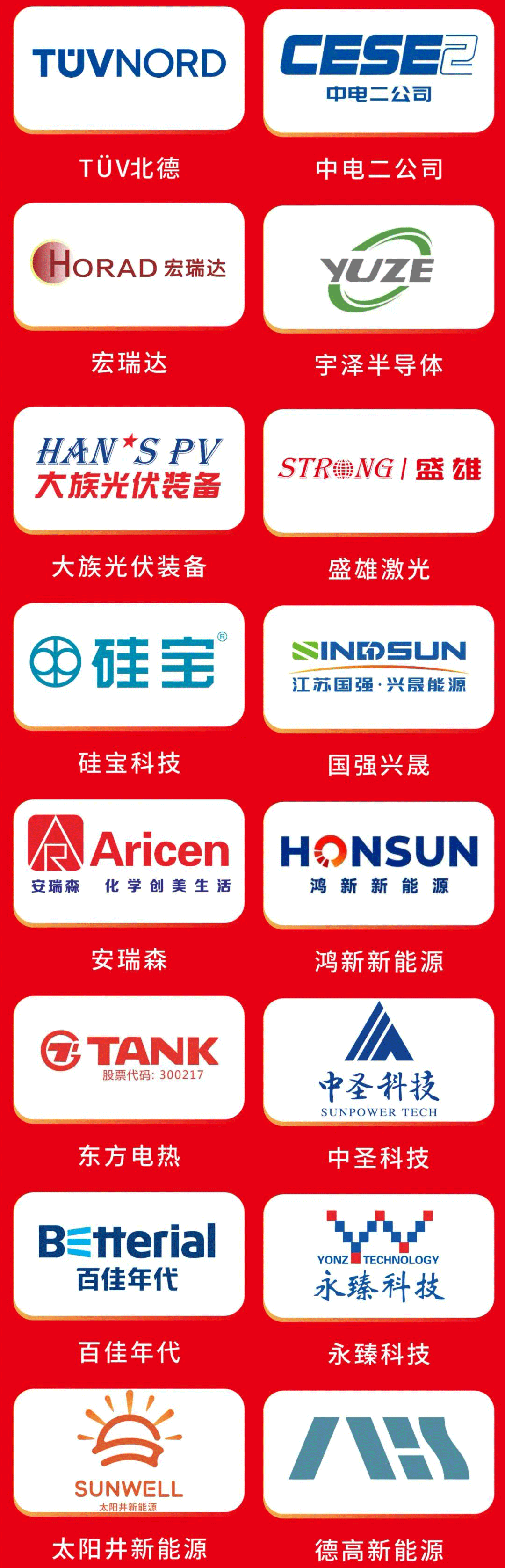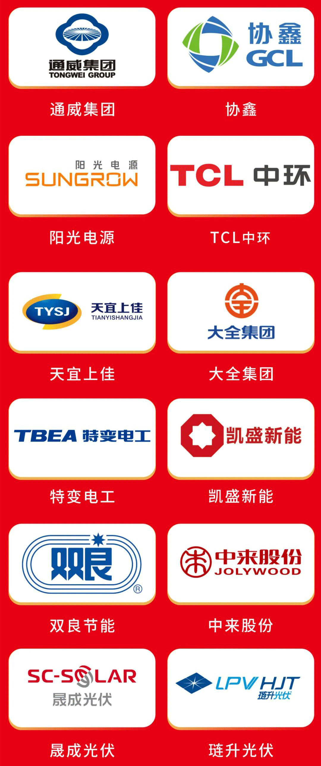 同時(shí),全球光伏全產(chǎn)業(yè)鏈的眾多龍頭企業(yè)紛紛參與:全球光伏行業(yè)首家世界500強(qiáng)企業(yè)通威、全球領(lǐng)先的源、網(wǎng)、荷、儲(chǔ)、充、算一體化綠色能源運(yùn)營(yíng)商協(xié)鑫、組件全球出貨“三連冠”隆基、全球最大變壓器制造商特變電工、全球光伏逆變器龍頭陽(yáng)光電源、全球光伏硅片龍頭TCL中環(huán)以及華為、天合光能、晶科、晶澳、正泰、阿特斯、天宜上佳、大全、中建材、雙良、中來(lái)等超百家企業(yè)將參加本屆大會(huì),屆時(shí)他們將匯聚蓉城,共襄盛舉。