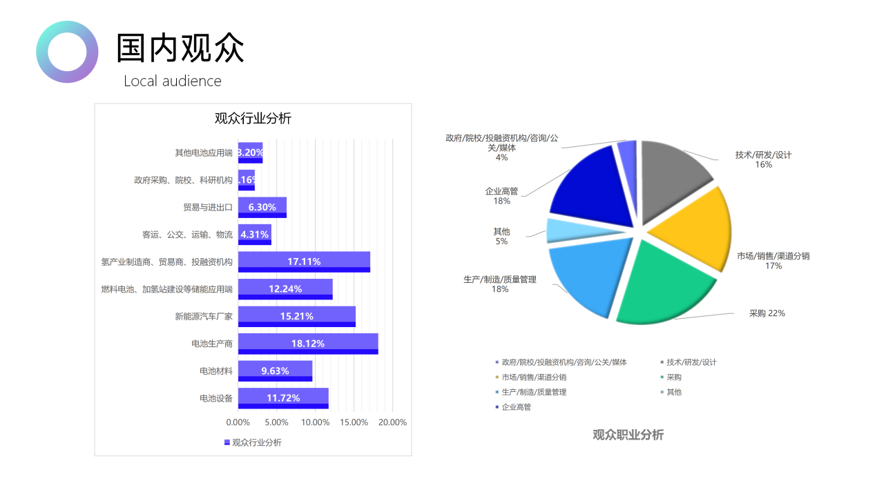 本屆博覽會:氫能+鋰電總規模達10萬㎡,1500余家展商,吸引來自全球電池與儲能、氫能燃料電池上下游產業鏈企業、材料設備企業供應鏈企業、汽車、交通、電力、能源等領域的13.75萬人次專業觀眾蒞臨現場參觀,海外觀眾達8731人,旨在打造全球氫能燃料電池行業最具影響力世界級技術交流與展貿平臺。本屆展會以制氫技術、氫氣儲運、燃料電池系統與部件、燃料電池應用、加氫站技術為核心,通過對氫能及燃料電池、行業應用產品、設備、電池產業應用端的全產業鏈展示,促進氫能與燃料電池產業的進一步發展,推動與全球氫能與燃料電池產業包括汽車、能源、電力、材料等行業之間的信息交流與合作。