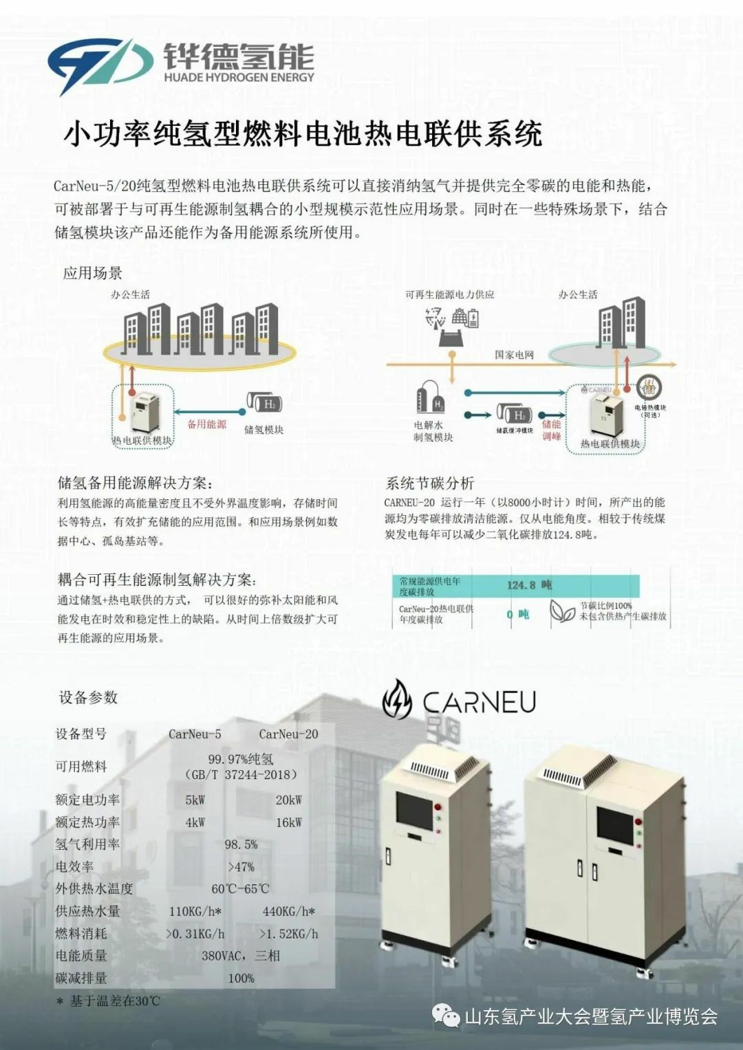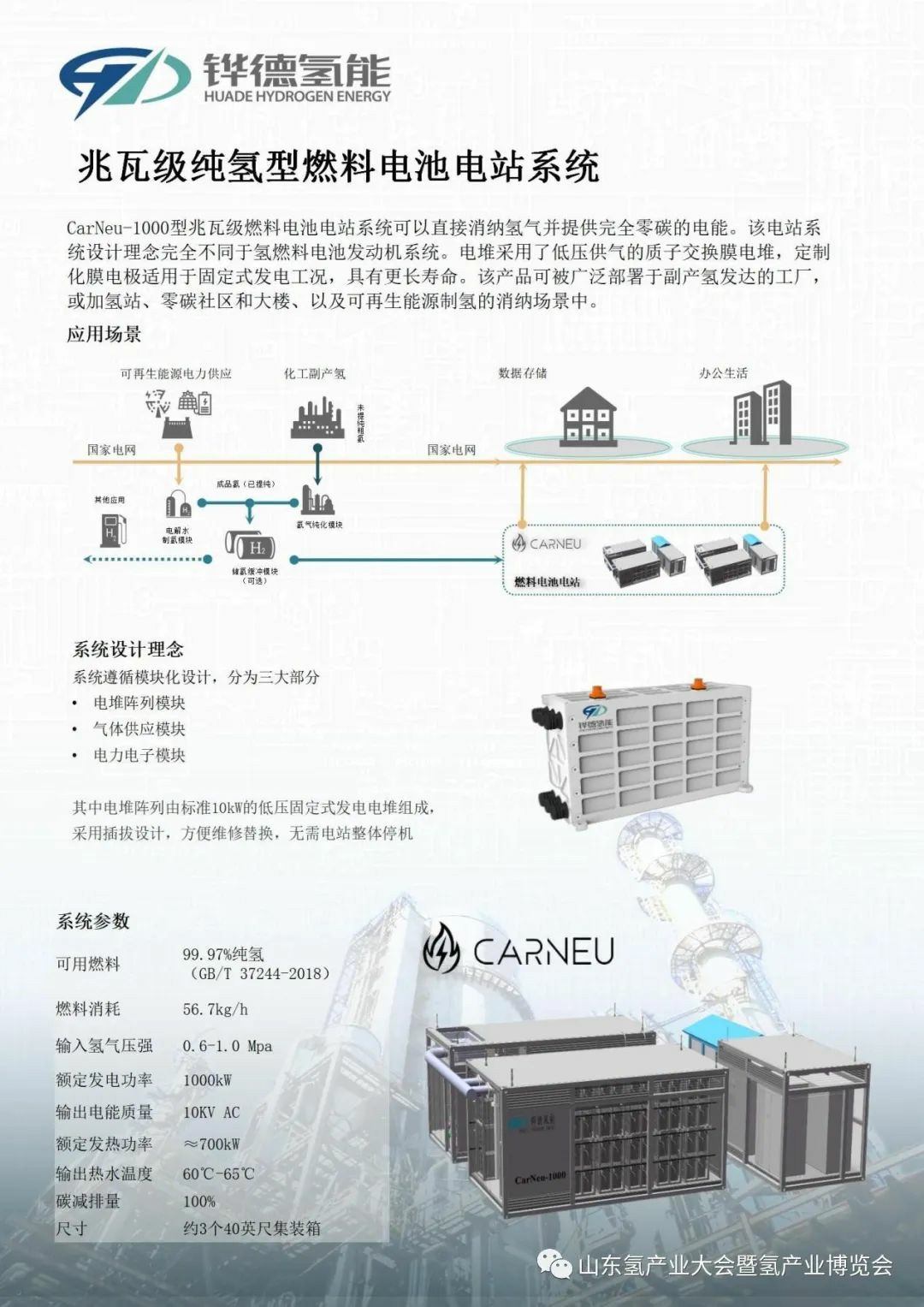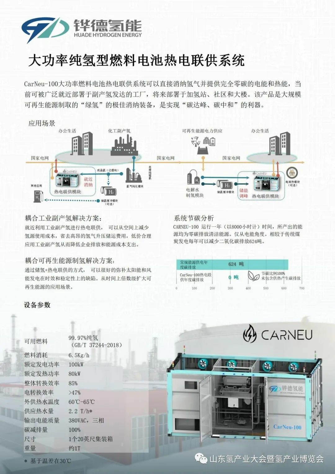 公司中大功率100KW-1MW純氫型燃料電池熱電聯供系統/發電站直接消納氫氣,提供完全零碳的電能和熱能,當前可廣泛就近部署于副產氫發達的工廠,將來部署于氫氣管道可達的加氫站、社區和大樓。該產品是未來大規模可再生能源制取的“綠氫”的極佳消納裝備,是實現“碳達峰、碳中和”的利器。