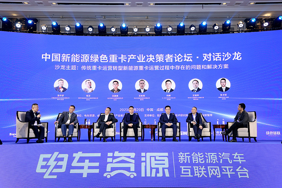 “中國新能源綠色重卡產業決策者論壇·對話沙龍”上,陜西中藍遠宏電動交通服務有限公司董事長常衛、山東華旭供應鏈管理有限公司王嘉良、重慶東然新能源科技有限公司董事長王東然、三一重卡電動化營銷公司總經理科樺、徐州徐工新能源汽車有限公司銷售總監王緒華、如果科技重卡品牌總經理張才權等六位嘉賓,圍繞“傳統重卡運營轉型新能源重卡運營過程中存在的問題和解決方案”主題展開討論。