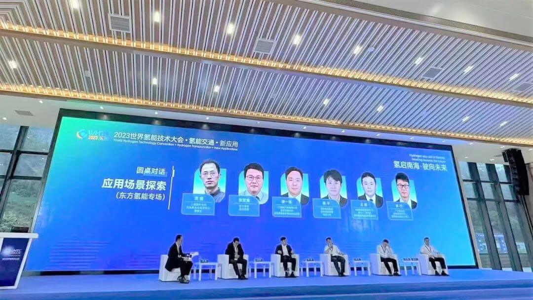 在應(yīng)用場景探索(東方氫能專場)的圓桌對話環(huán)節(jié),東方氫能副總經(jīng)理張定海針對東方電氣氫能全產(chǎn)業(yè)鏈的科技應(yīng)用示范、運(yùn)營情況以及在運(yùn)營過程中凝聚的發(fā)展經(jīng)驗作了分享交流。東方氫能立足東方電氣能源裝備優(yōu)勢,深耕綠色能源領(lǐng)域,大力開展氫能及燃料電池核心裝備的技術(shù)研制,探索出了氫能應(yīng)用的多條有效路徑。通過一體化多場景示范,集成綠色制氫、多元儲氫、氫能綜合應(yīng)用等技術(shù),建設(shè)了國內(nèi)首個氫能全產(chǎn)業(yè)綜合示范園,為廣泛應(yīng)用“氫潔”能源提供了系統(tǒng)解決方案。