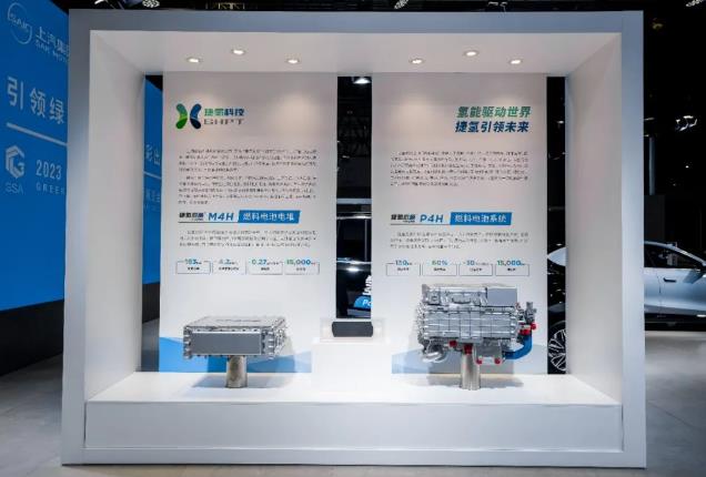 碳博會現(xiàn)場,由捷氫科技自主研發(fā)的PROME M4H燃料電池電堆、P4H燃料電池系統(tǒng)、全新一代膜電極等拳頭產(chǎn)品,以及搭載捷氫科技產(chǎn)品的燃料電池MPV上汽大通MIFA氫等創(chuàng)新成果悉數(shù)亮相,并通過展品、展板、多媒體等形式呈現(xiàn)了上海市燃料電池汽車示范應(yīng)用項(xiàng)目階段性成果。