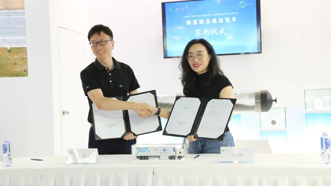 在這場(chǎng)氫能界的盛會(huì)上,上海氫楓能源技術(shù)有限公司(以下簡(jiǎn)稱:氫楓能源)與上海浦江特種氣體有限公司(以下簡(jiǎn)稱:浦江氣體)達(dá)成了一項(xiàng)重大合作,雙方簽署了批量鎂基固態(tài)儲(chǔ)運(yùn)氫車采購(gòu)協(xié)議。