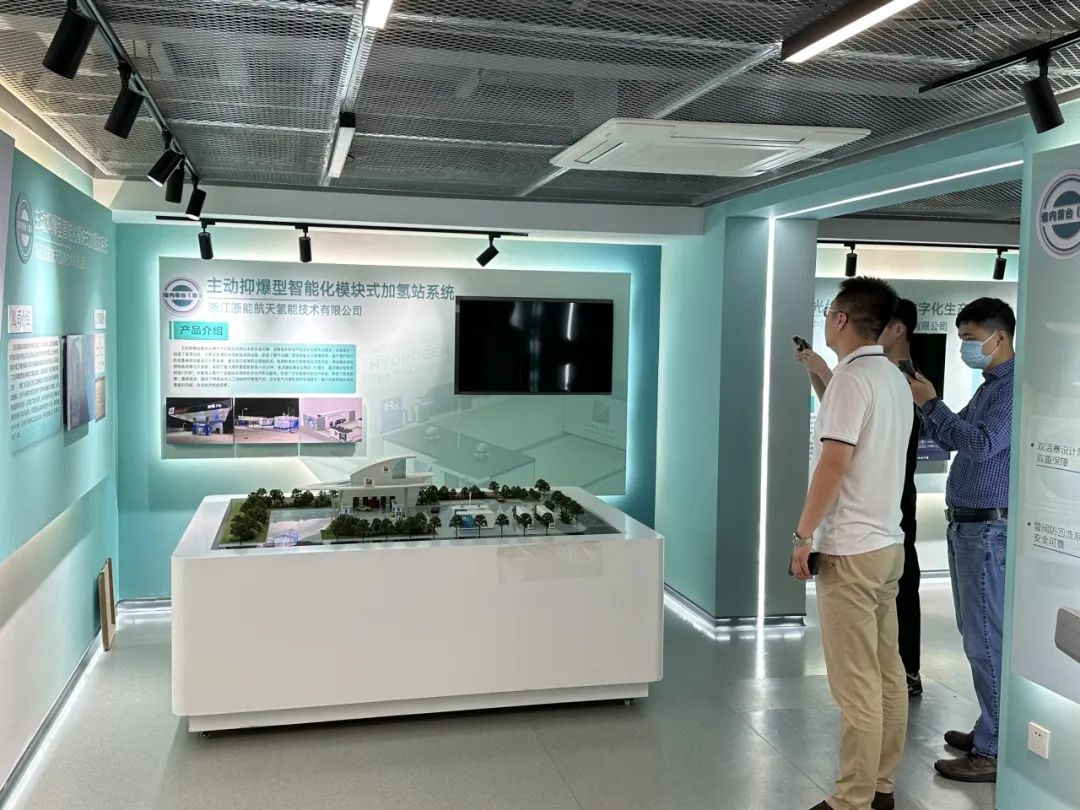 7月28日,浙能航天氫能一行赴白塔全球精準合作綜合體(簡稱“白塔綜合體”),參觀浙江省制造業首臺(套)展示館,驗收公司自主研發的首臺(套)產品《主動抑爆型智能化模塊式加氫站系統》的布展情況。