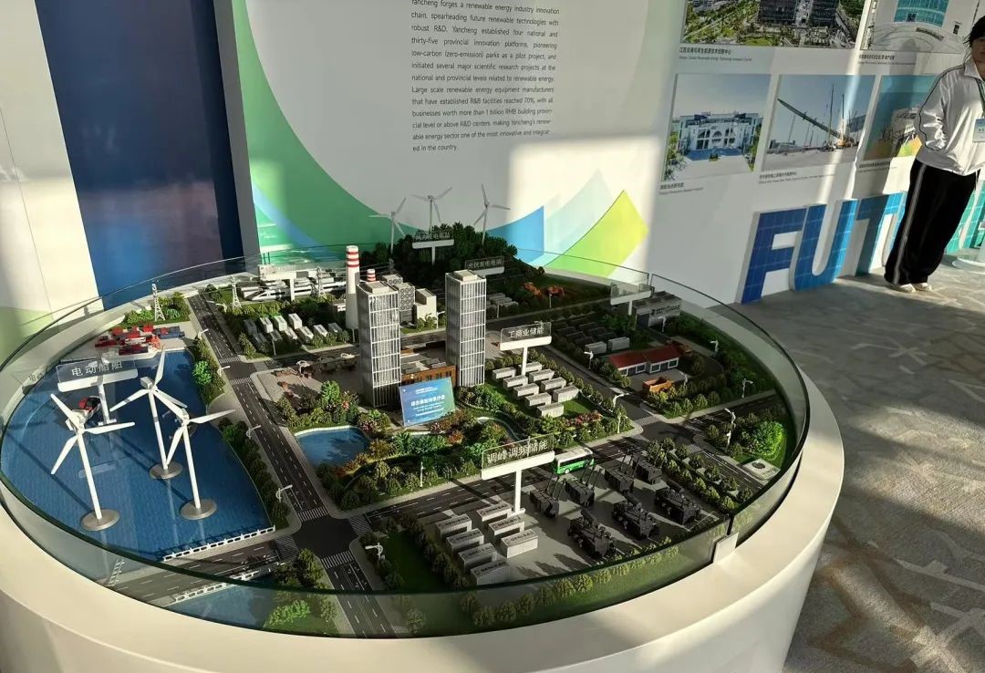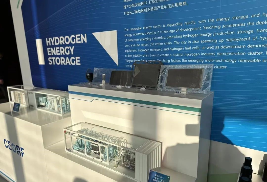 現場外,一系列風電、光伏產業設備有序展覽。鹽城的“風光”資源得天獨厚。鹽城是江蘇乃至全國海上風電開發建設條件最好的區域之一,現有可開發的海上風電和光伏資源約60GW,相當于3個三峽電站。鑫思創氫能的參會代表們深入了解了鹽城的新能源產業現狀和發展趨勢,積極與各參會人員交流,分享了公司在氫能領域的研發和產業化經驗。