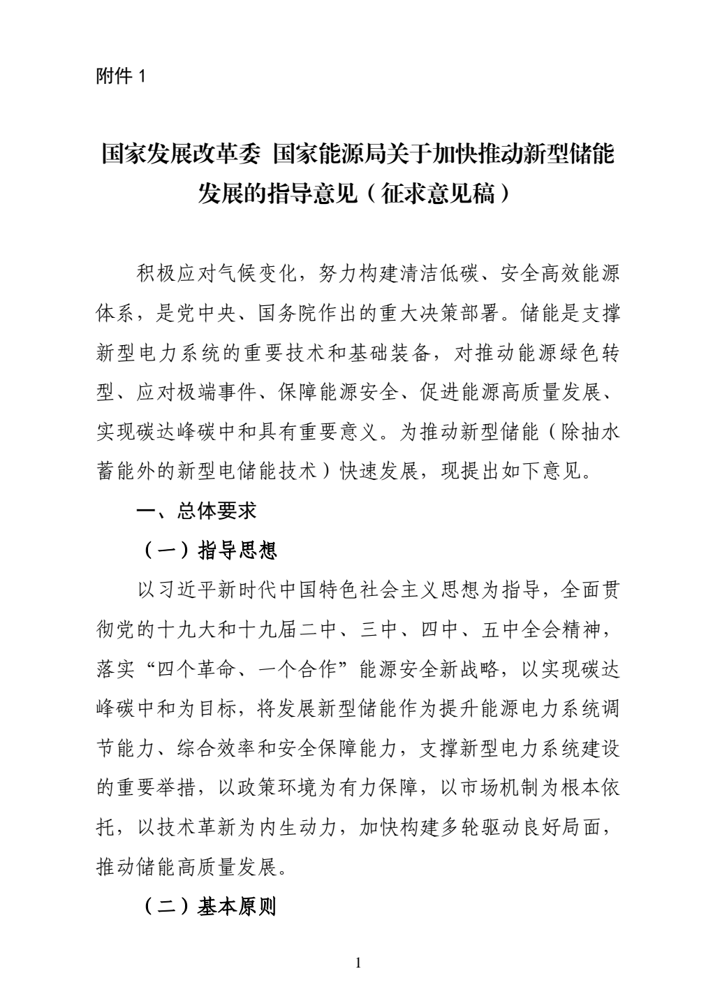 1.國家發展改革委 國家能源局關于加快推動新型儲能發展的指導意見(征求意見稿)