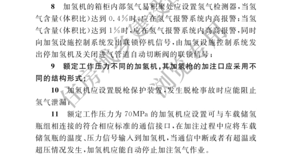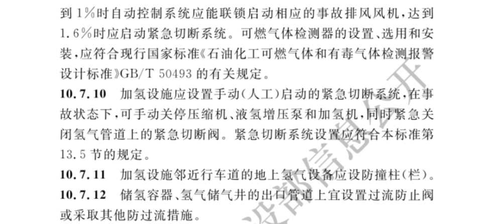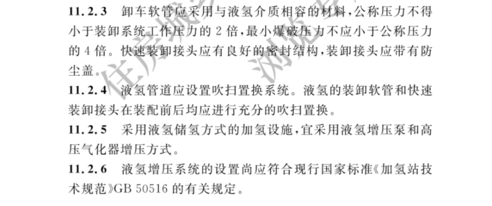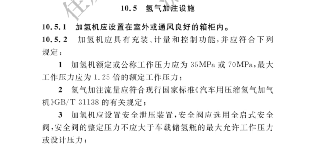 以下是新標準中加氫站技術標準的具體內容: