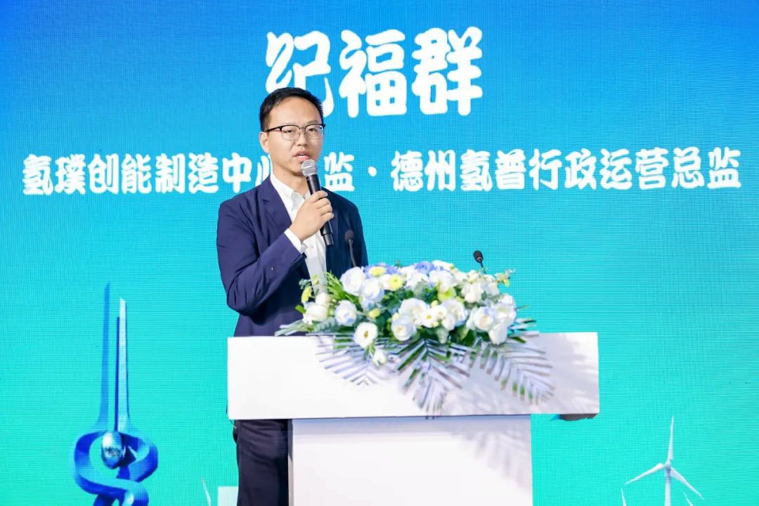 氫璞創能制造中心總監、德州氫普行政運營總監紀福群進行了《氫璞電堆生產制造及批量化管理》主題報告。紀福群總監分享了氫璞創能的生產制造與商業應用情況,提出氫燃料電池兼具長續航、耐低溫、補能快等特點,更適合于長距離、重載和商用,與鋰電、混動應用場景互補,長期共存的觀點。