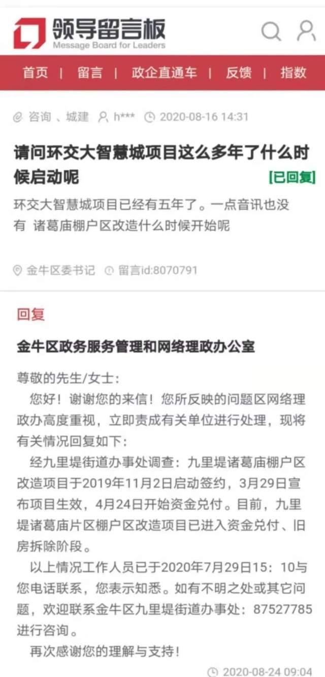雖然新都區(qū)與西南交大的全面合作比金牛區(qū)晚了三年,但已經(jīng)能看到企業(yè)落地,而且還有氫能技術(shù)省外輸出等成果顯現(xiàn),而金牛區(qū)的「環(huán)交大智慧城」卻遲遲未見動靜,以至于去年8月份,有人到人民網(wǎng)領導留言板上詢問項目啟動時間。