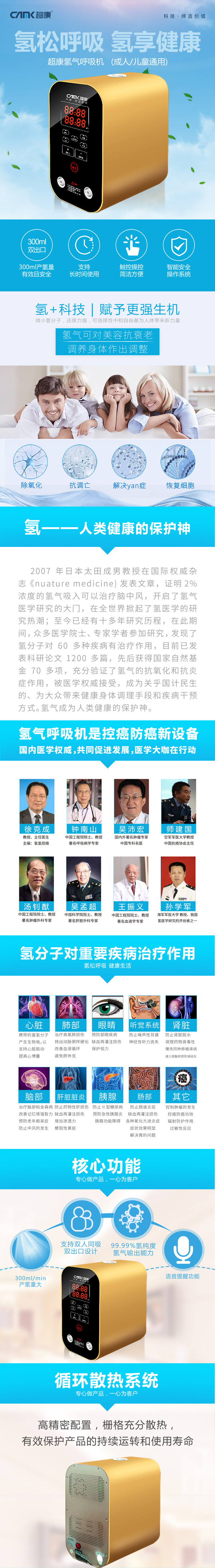 超康集團獨立設計開發的氫氣呼吸機系列產品,采用了核心專利電解技術,可實現99.99%以上的氫氣純度。超康氫氣呼吸機擁有歐盟CE國際認證書及檢測部門在純度、流量數據上的檢測報告。超康無論是在產品設計、材料配置還是研發技術上都一貫沿襲高品質低價格的市場口碑。
