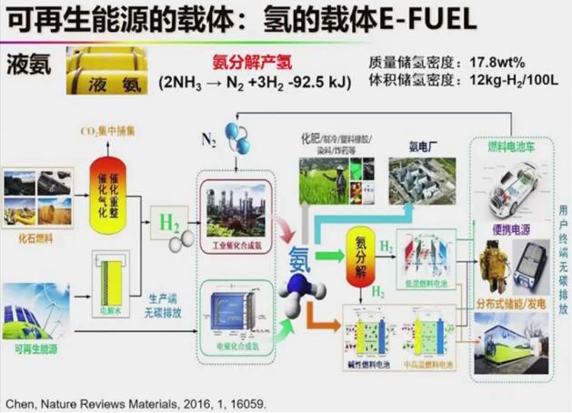 目前在很火的“液態(tài)陽光”,即“清潔甲醇”,利用光伏等可再生能源產生的電力電解水,制成氫,再補獲二氧化碳,生成甲醇,但捕獲二氧化碳成本很高,僅可用于飛機和遠洋貨輪。