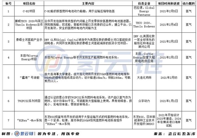 以日本游輪NYK Line項目為例,NYK Line將管理整個項目,同時協助船舶設計和法律合規;東芝將在船上安裝大功率燃料電池系統并開發操作技術;川崎重工將負責開發船上的氫氣供應系統和能源管理系統;Eneos負責開發氫燃料供應體系(該公司的前身為JXTG);日本船級社ClassNK將合作對已開發船只的安全性進行評估。