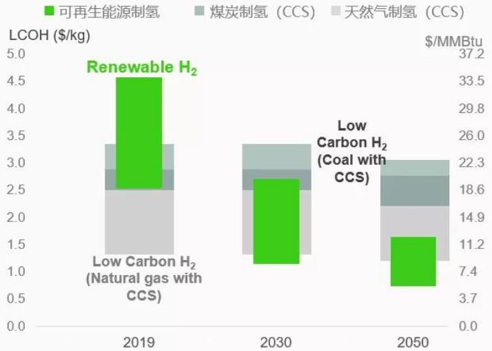 未來,傳統的化石能源制氫隨著碳稅、碳排放提高,成本將逐漸增加,而可再生能源和綠氫的成本隨著技術進一步的發展和產業的逐步完善,成本將進一步下降。未來綠氫供給將逐漸成為主流,預計到2030年,綠氫成本將比化石能源制氫更有競爭力,屆時綠氫供應占氫能總比重將提升至15%左右。