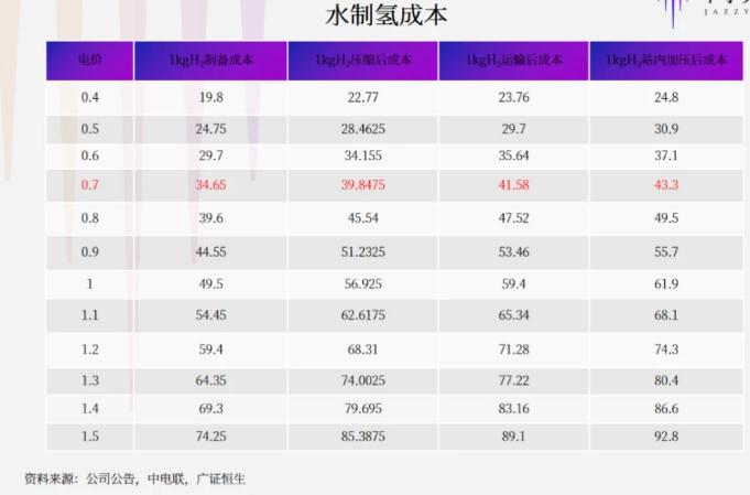 以大工業(yè)電價均價0.61元/kWh計算,當(dāng)前電解水制氫的成本為3.69元/立方米。當(dāng)用電價格低于0.50元/kWh時,電解水制備的氫氣成本可與汽油相當(dāng) [1]。