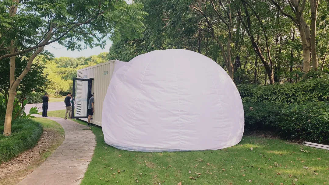 展示館主體是一個相比于傳統建筑能耗少的氣膜建筑,創意來源于同濟大學上海國際設計創新研究院常務副院長蘇運升博士主創的(氣膜版)“火眼”實驗室。