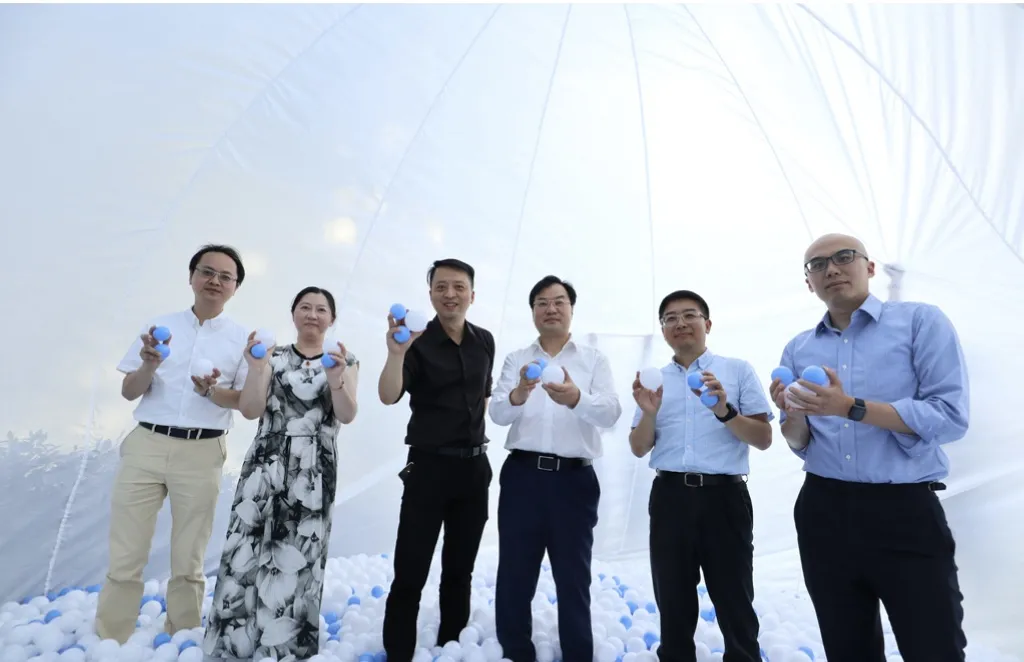 圖3 氣膜建筑內的藍白色球分別象征“氫原子”與“氧原子”