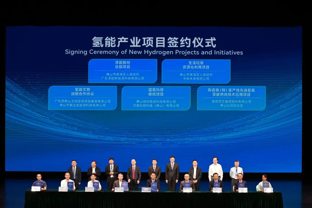 大會現場,國氫科技全資子公司佛山綠動氫能科技有限公司與鴻基創能科技(佛山)有限公司簽訂戰略合作協議,雙方將致力于氫燃料電池及PEM電解水制氫設備核心材料的研究、開發利用及制造,共同推進核心材料實現國產化替代。